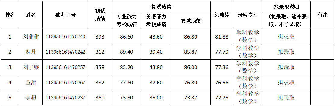 榆林学院2026年硕士研究生招生复试结果及拟录取建议名单