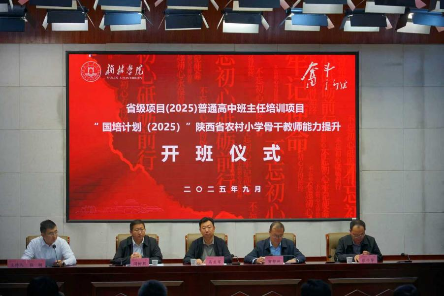 9月20日上午,“国培计划(2025)”—陕西省农村小学数学学科骨干教师能力提升培训以及省培项目(2025)—普通高中班主任培训项目开班仪式在榆林学院逸夫楼报告厅合并举行。榆林学院党委副书记马亚军、数学与统计学院院长闫树熙、首席专家贺智利、文学院副院长张子华以及来自陕西省各市、县(区)参加培训的各50余名小学数学骨干教师和高中班主任参加了开班仪式。开班仪式由教师发展中心副主任张桐主持。