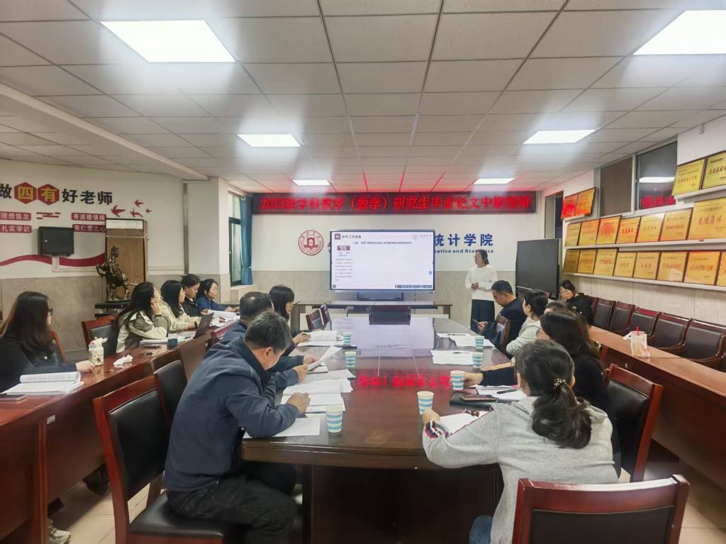 为强化研究生培养过程管理,保障学位论文质量,9月29日,数学与统计学院在3212会议室成功举办2023级学科教学(数学)专业硕士研究生毕业论文中期答辩会。答辩会由副院长马永刚主持,评审组特邀榆林市第一中学资深教师李春芳与学院研究生导师共同组成。