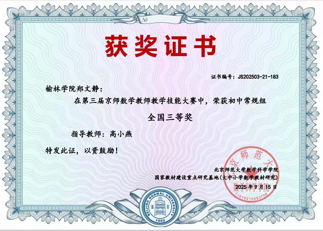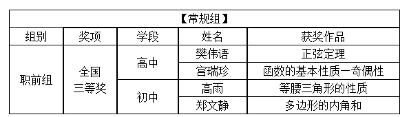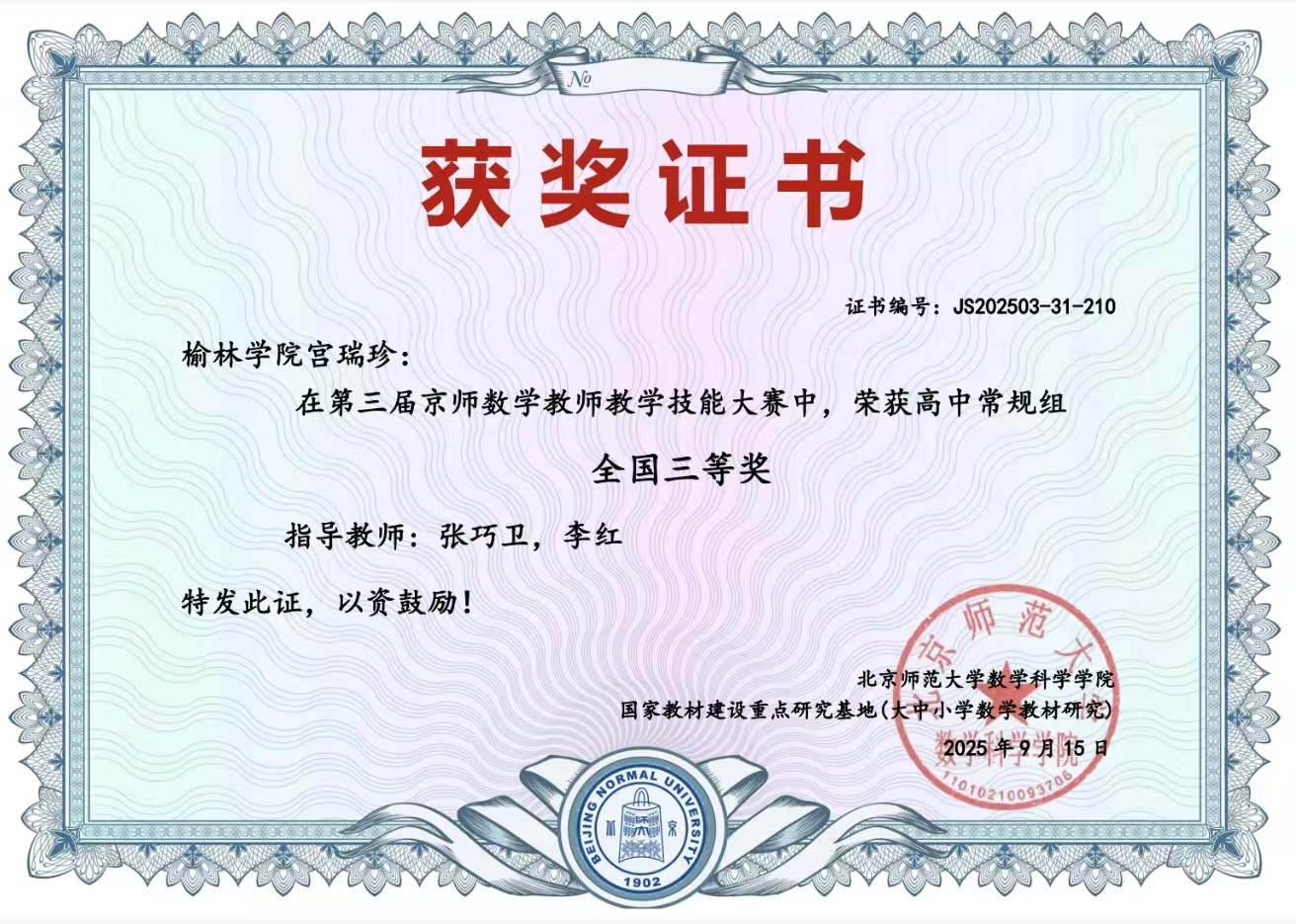 近日,第三届京师数学教师教学技能大赛获奖名单正式公布,我院研究生表现优异,共荣获常规组全国三等奖4项,其中高中学段2项、初中学段2项。