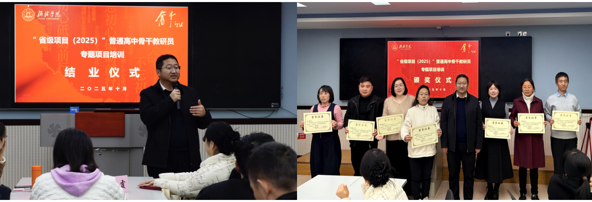 结业仪式上,数学与统计学院院长闫树熙教授致闭幕词。他充分肯定了参训学员在培训期间展现出的学习态度与专业精神,并对大家的积极配合表达感谢。他指出,各位教研员在研讨、观摩和访学中的深入分析和研究思考,为培训的高质量开展作出了积极贡献。他表示,学院将持续强化培训的研究性与实践性特点,更好服务于省内教研体系建设,并欢迎学员们就课程设计与组织形式提出改进意见,共同推动培训机制不断优化。同时,闫院长邀请大家关注学院的学科教育(数学)硕士研究生项目,期待在人才培养、教研改革和区域教育发展方面展开更深合作。同时,他鼓励学员们推荐优秀人才报考,并为本次培训的优秀学员颁发了荣誉证书,以肯定大家的学习成果。